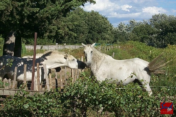 Ils jouent en attendant la promenade vers le canal du midi à 500m de l'auberge camarguaise